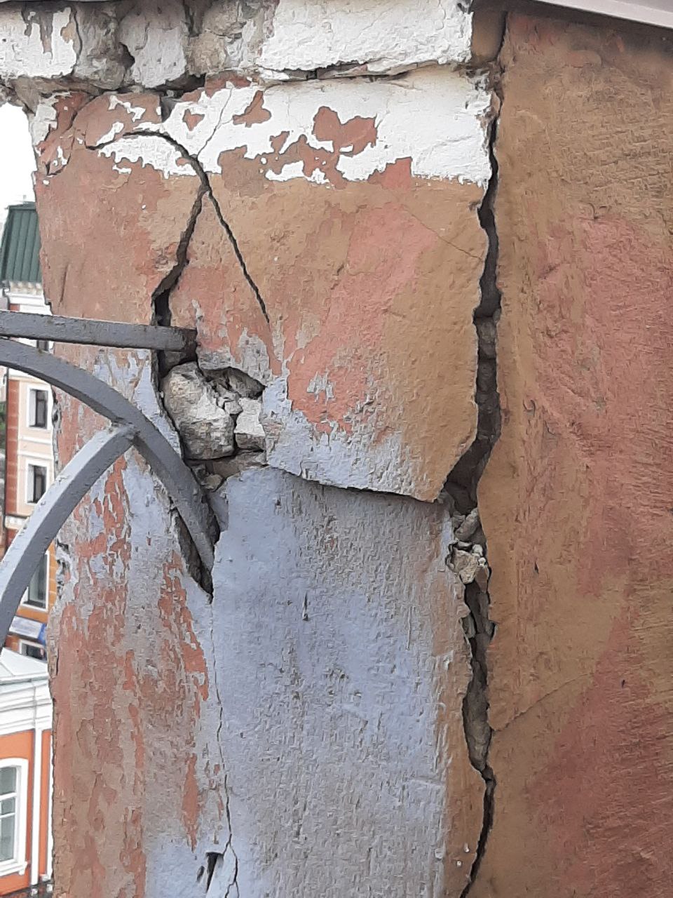 «Орловцы регулярно обращают внимание на то, что с фасада сыплются штукатурка и кирпичи, а на стенах заметны отчётливые пятна, оставшиеся после протекания крыши.