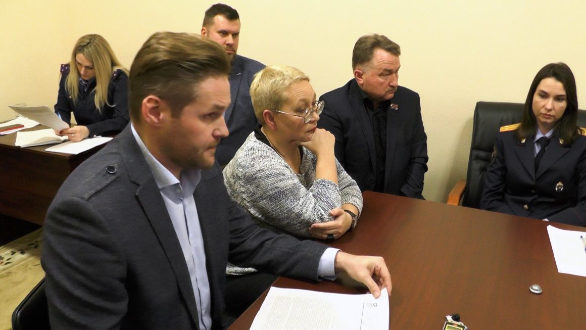 Следователь Надежда Кибалина и руководитель СУ СК России по Орловской области Пётр Юдин объясняют депутатам и редактору «Орловской среды-плюс» сложности расследования «дел Парахина»