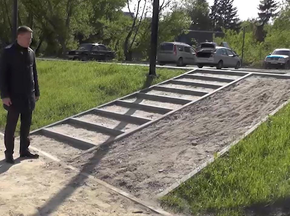 – Мы находимся на объекте, который был выполнен в 2023 году. До сентября 2021 года я был главой города Болхова, – рассказал Борис Скворцов. – Еще когда я находился в должности, ко мне обращался руководитель департамента по развитию территорий Карпов с тем, чтобы сделать здесь объект федерального значения, потом его назвали «Болховкин луг». Я ему сказал, что здесь этот объект делать категорически нельзя, так как местность болотистая. Было предложение реализовать федеральную программу на площади Ленина. Тем не менее новое руководство города приняло решение – и объект сделали именно здесь. Скажу открыто: я бы не допустил такого безобразия, которое здесь творится. Здесь нарушены все строительные нормы. Здесь налицо удешевление деревянного покрытия, здесь на дорожках непонятно что – то ли песок, то ли щебень, здесь нарушены уклоны пандусов для инвалидов, отсутствует твердое покрытие на ступеньках, можно получить травму. Ну и эстетического вида никакого нет.
