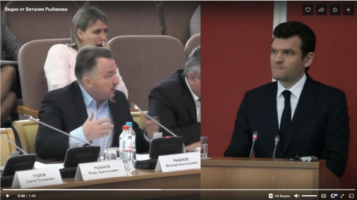 Депутат Виталий Рыбаков и слушающий его Александр Бирюков