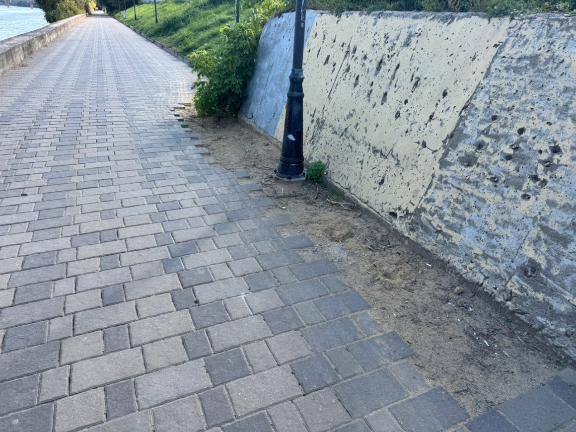 Другие пользователи добавили фото тротуара на трамвайной остановке у сквера Маяковского и комментарий, что такая же картина – у гостиницы «Орел».
