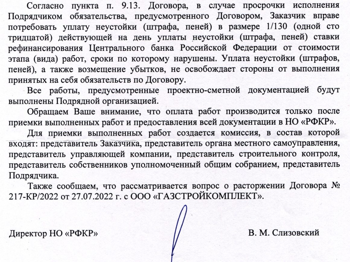 До конца 2024 года НО «РФКР» ещё как-то имитировала работу по ремонту, а с начала 2025 года прекратила даже эти действия! Выждав приличный срок, я послала на имя директора претензию.