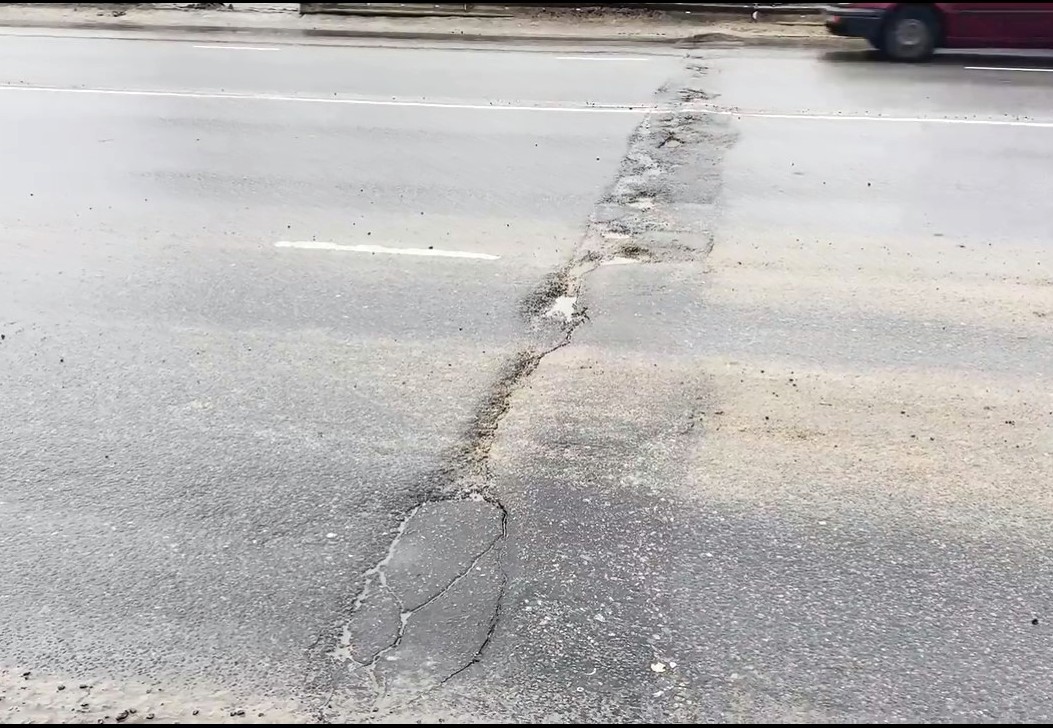 – Первое, что бросается в глаза, – это разрушение дорожного покрытия в местах деформационных швов, трещины, ямы – и так по всей плоскости моста, – рассказал Виталий Рыбаков. – На кадрах – ярко выраженная колейность, которая создает риски при движении автотранспорта. При этом мы видим латки разного времени, некоторые уже разрушились, другие вывалятся в ближайшее время.