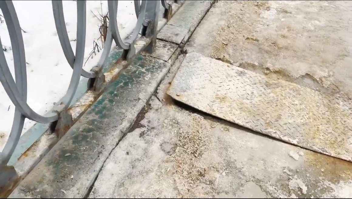 Продолжает разрушаться и съезд с моста на улицу Черкасскую. И всё потому, что горе-строители сделали, а горе-приемщики не увидели, что уровень ливневки выше уровня образующейся лужи. Перила, которые не прогрунтовали строители и которые в прошлом году бодро красили сотрудники Спецавтобазы, продолжают ржаветь и разрушаться. Приготовлены неприятные сюрпризы и для пешеходов. Крышки коммуникационных колодцев оторваны и выпирают над тротуаром, а в некоторых местах их нет совсем. Разрушаются и лестницы: уже видны торчащие куски арматуры, так что будьте внимательны и осторожны! – предупредил депутат горожан.