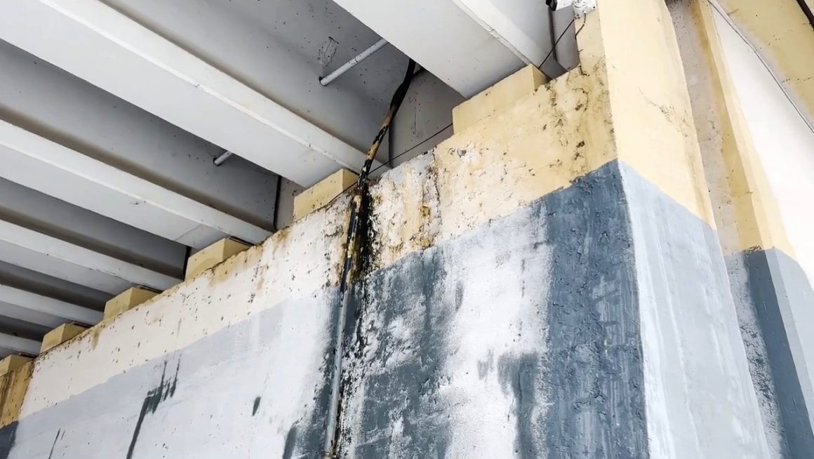 – И конечно же, мост продолжает течь, разрушая элементы гидротехнического сооружения, – констатировал Виталий Рыбаков. – Постепенно бетон разваливается, обнажая арматуру, которая ржавеет и ускоряет дальнейшее разрушение бетона. Попытки закрасить, скрыть грязные подтеки не удались: краска отслаивается, а поверх нее формируются новые подтеки.