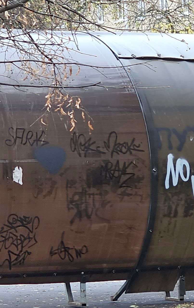«У жителей 3-ей Курской теперь Орел будет ассоциироваться с новым остановочным павильоном (см. фото. – Прим. ред.), который поставили сегодня рядом с домом 53. Хотелось бы сказать, что это вандалы разрисовали, но нет – его сегодня установили именно таким. Ждем очередную отписку от Администрации»