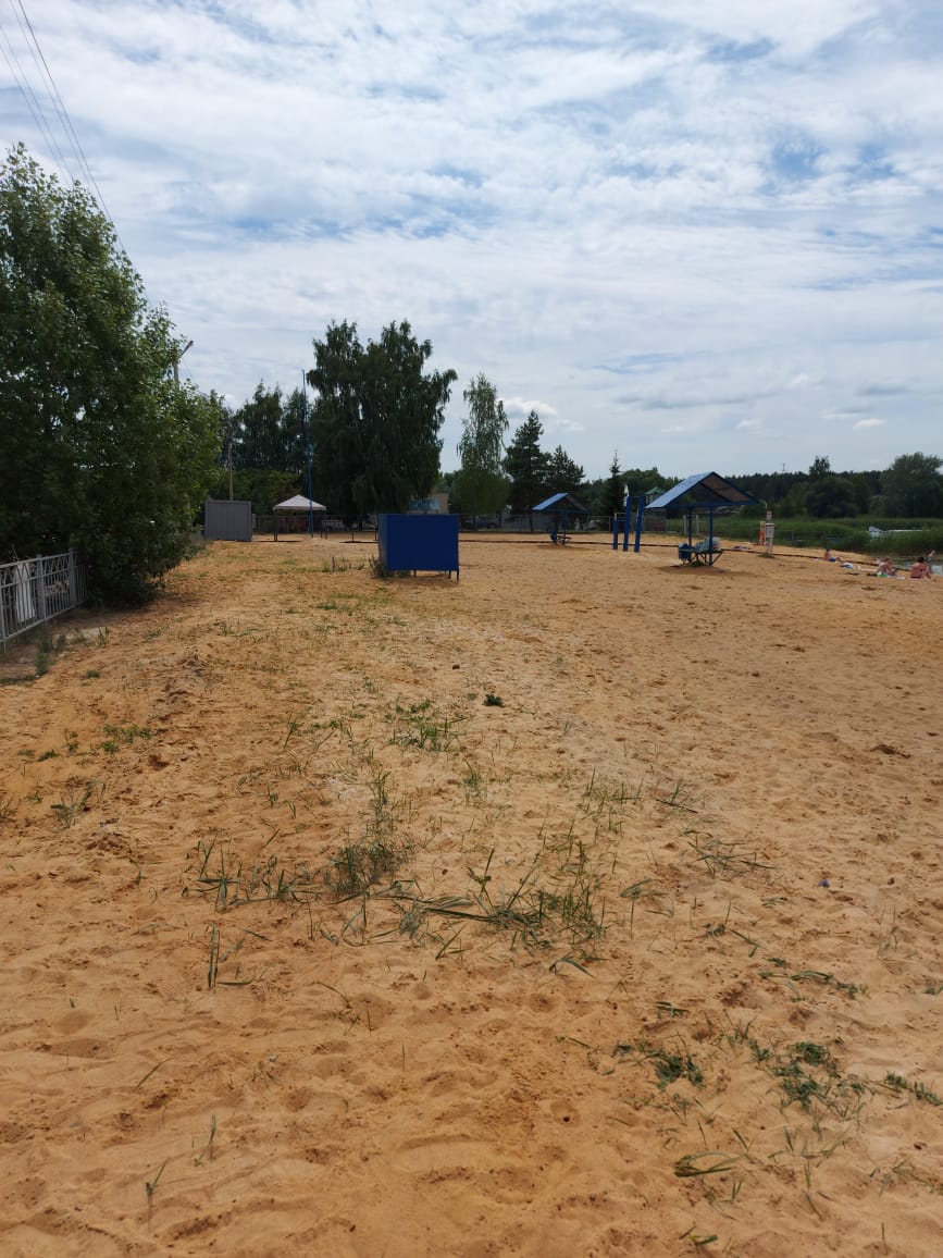 К концу июня городской пляж на озере Светлая жизнь, наконец-то, вернулся к своему прошлогоднему состоянию. Песок, который вывалили возле скамеек и раздевалок, кое-как раскидали, некошеная сорная растительность подсохла от жары, покорёженные от времени советские «грибки» выглядят не такими облезлыми — на старую краску, которая местами отвалилась, нанесли новый слой; мусор частично вывезли, поэтому запах от содержимого контейнеров, расположенных рядом с пляжем, распространяется на меньшее расстояние.