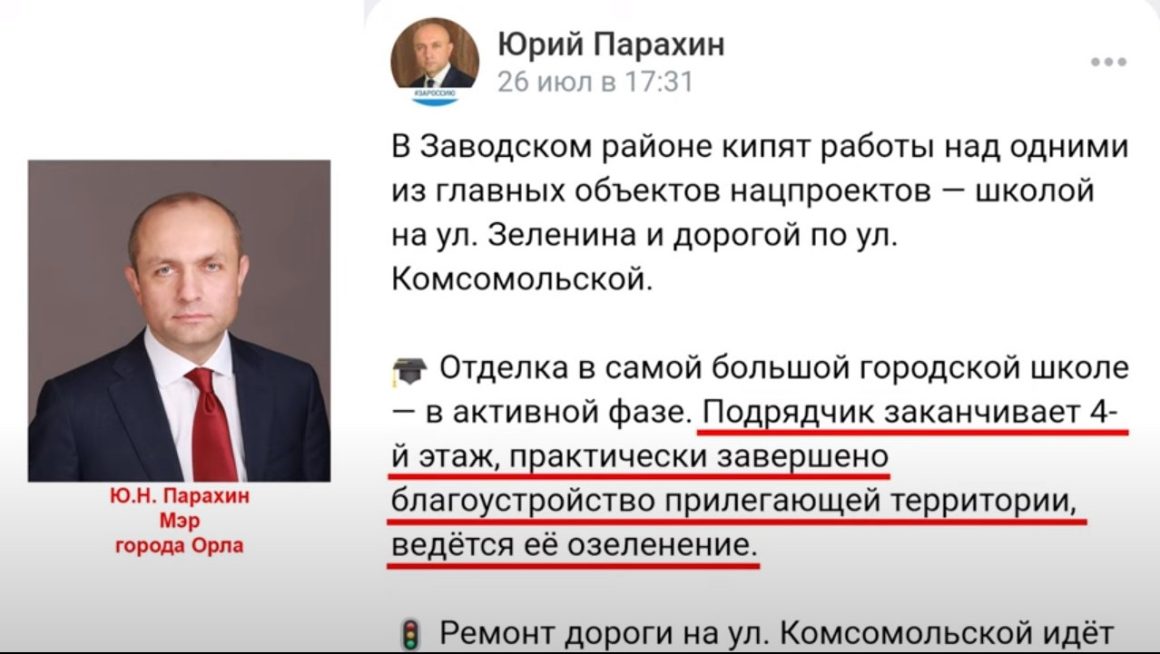 – Уже тогда было ясно, что школа не сможет принять учеников 1 сентября 2023 года, продолжил депутат. – 26 июля мэр Орла Парахин сообщил, что подрядчик уже заканчивает четвертый этаж, а благоустройство территории уже практически завершено.