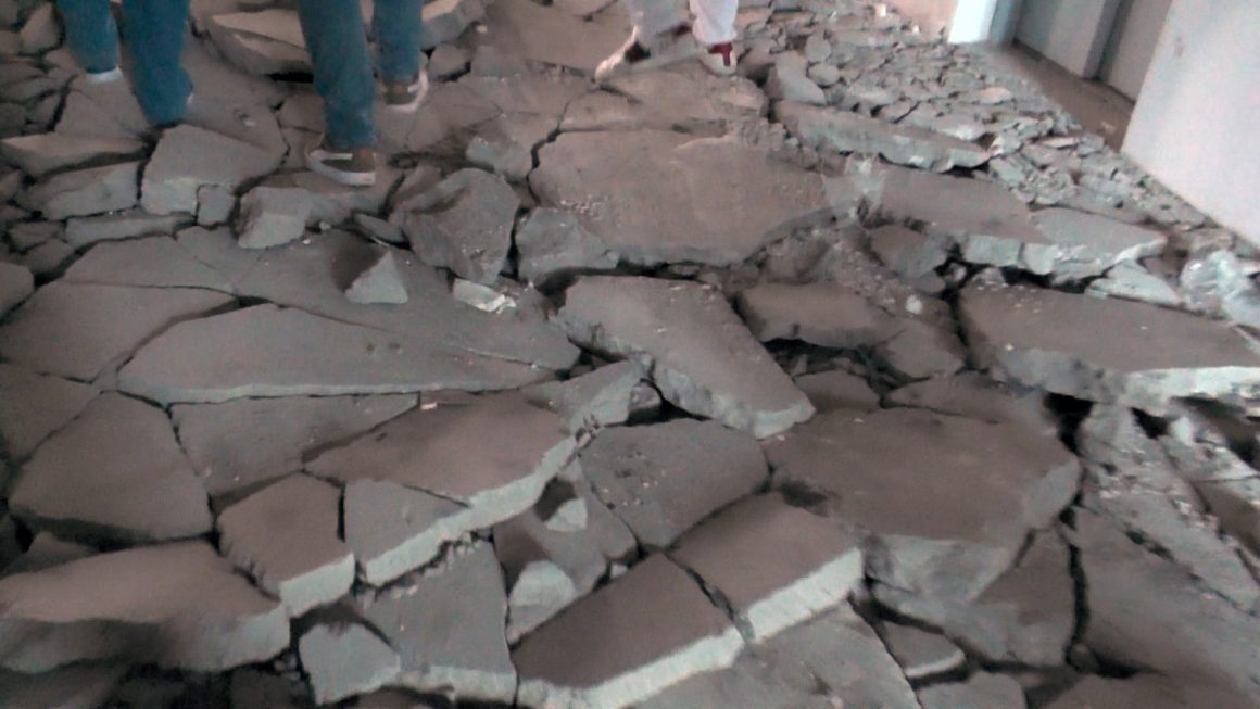 – Прошло больше месяца, лестничный марш до сих пор не отделан. На всех этажах местами отсутствует напольное покрытие. К монтажу потолков в коридорах и учебных помещениях еще даже не приступали. Местами не установлены радиаторы отопления, а установленной сантехники я не увидел совсем.