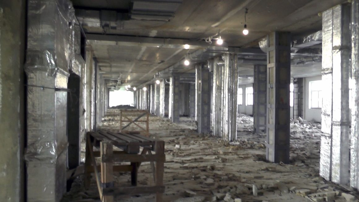 Кроме школы на ул. Зеленина, Виталий Рыбаков посетил и другой печально знаменитый орловский долгострой – так называемый «Титаник». Как и говорилось на заседании комитета облсовета (см. материал на стрю.14), здесь сейчас вовсю идут демонтажные работы: подрядчик демонтировал все внутренние коммуникации и конструкции (вплоть до стяжки пола) и укрепляет бетоном несущие колонны.